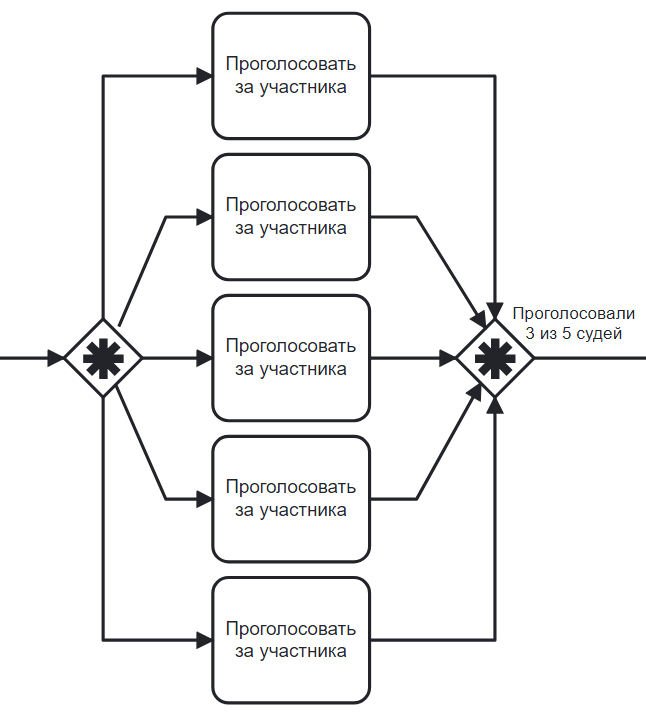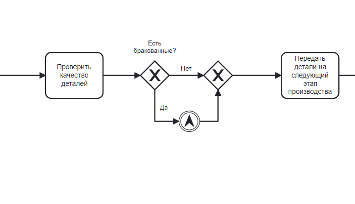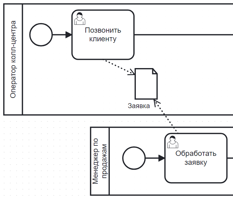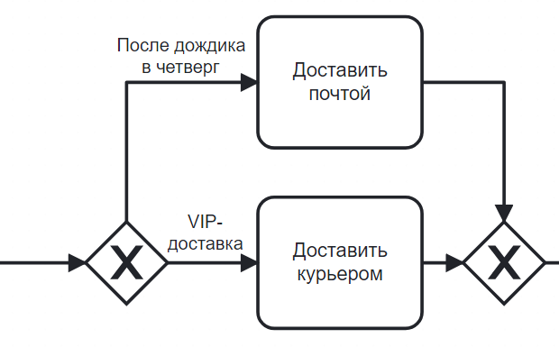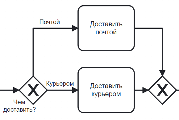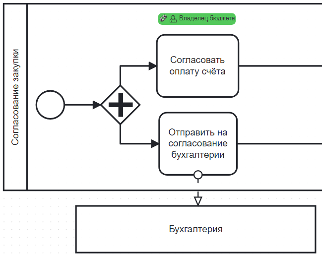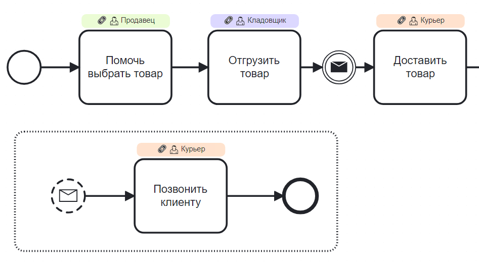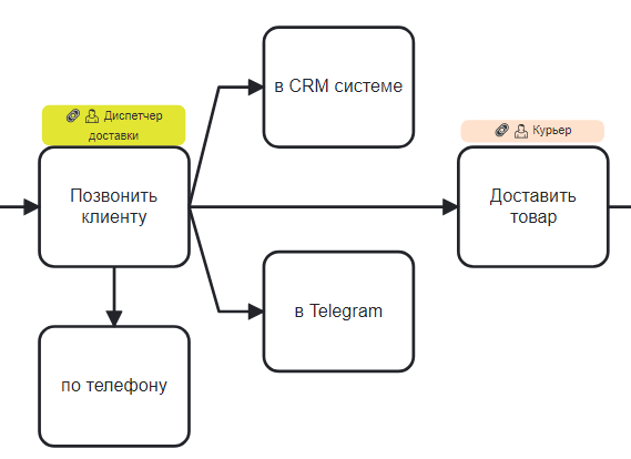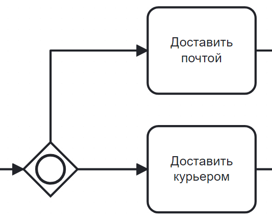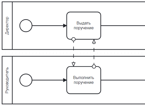 Используется для передачи работы между элементами процесса