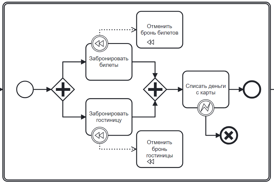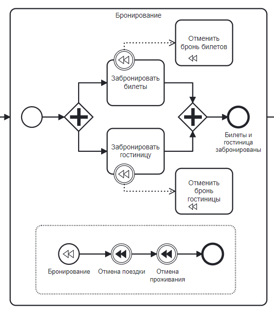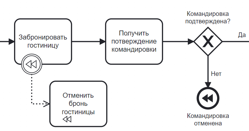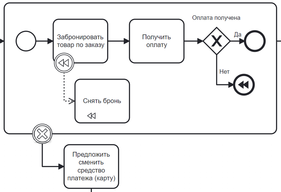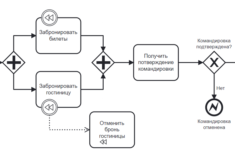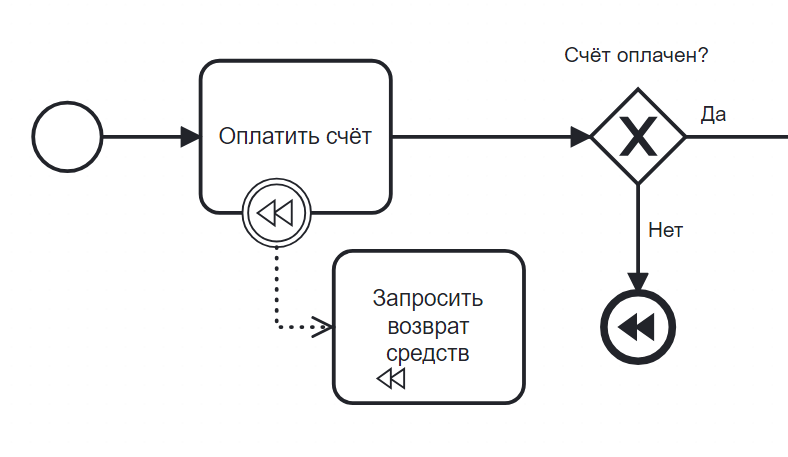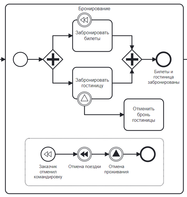 В схеме отсутствуют событие-инициатор компенсации.