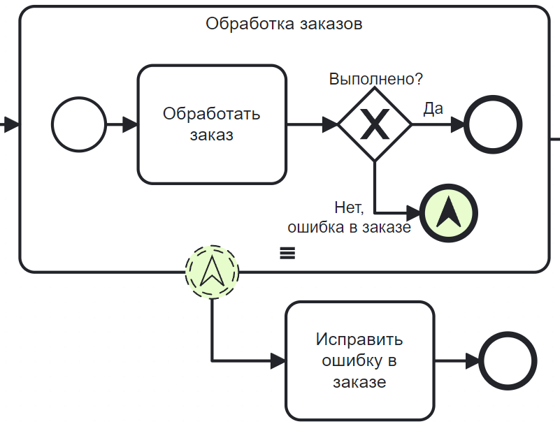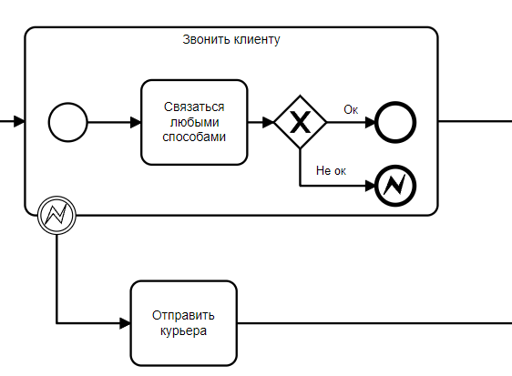 Используется для старта встроенного подпроцесса при наступлении события эскалации, прерывающего родительский процесс