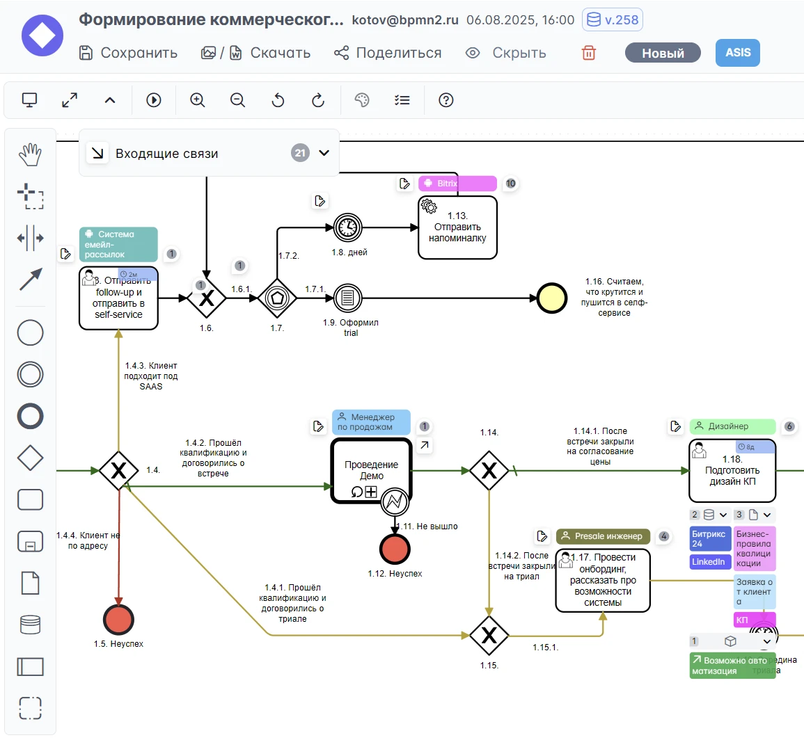 Stormbpmn поможет убедиться, что логика процесса проходима и правильно составлена.