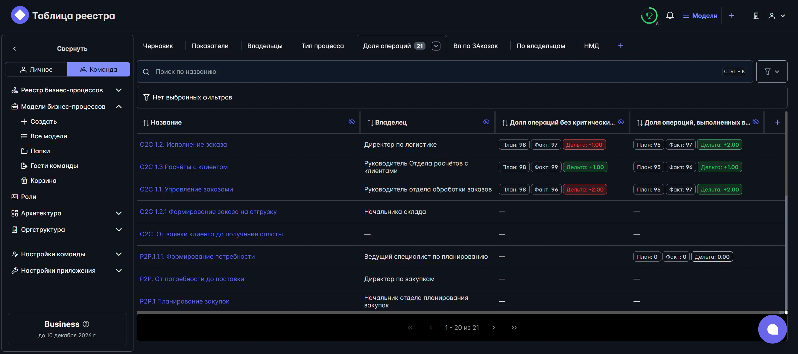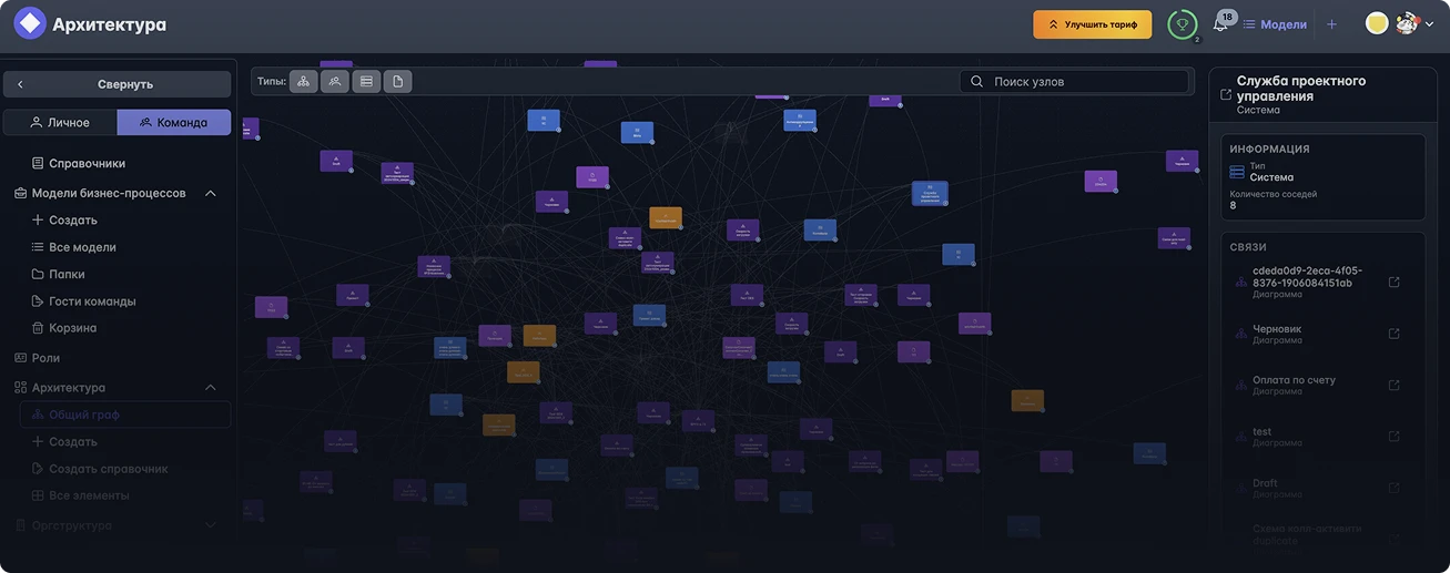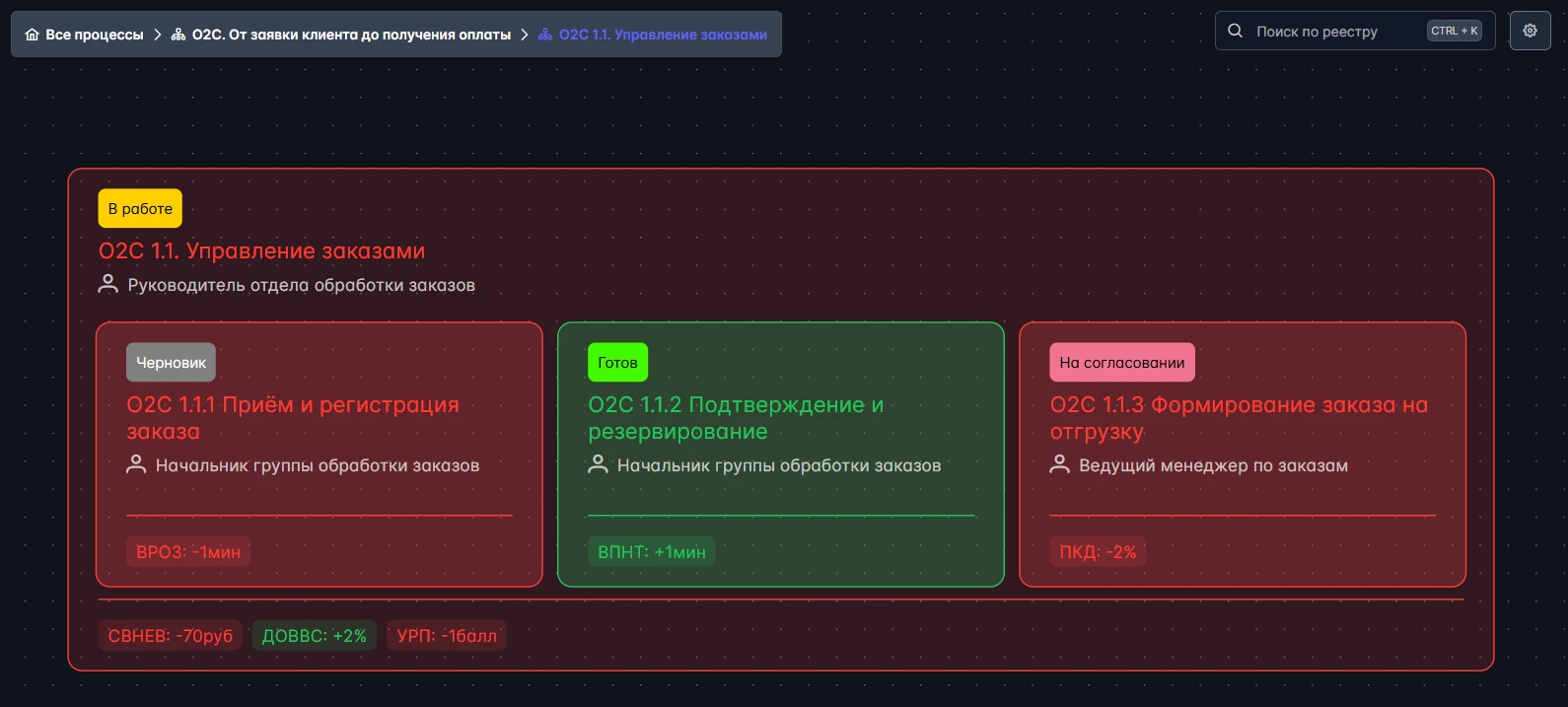 Все процессы компании в одной системе: с владельцами, статусами, метриками и связями.
